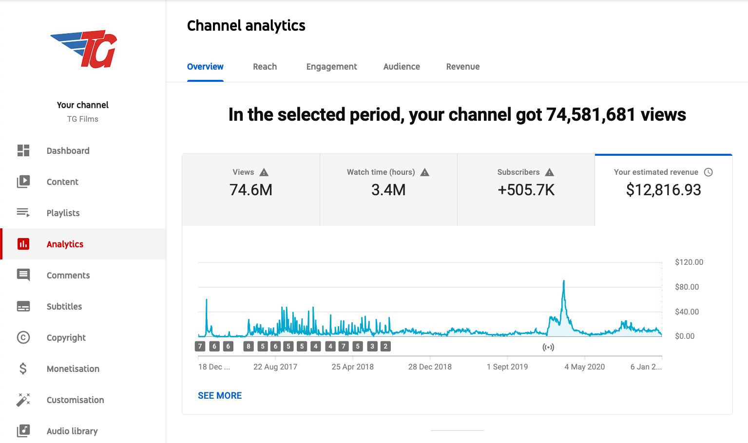 We have been creating content on YouTube for last 4 years and in this time period we have successfully Established 3 channels and we have gained around 220 Million views on YouTube that have generated us 178,000$ Or 1,30,00,000 Cr INR of YouTube revenue